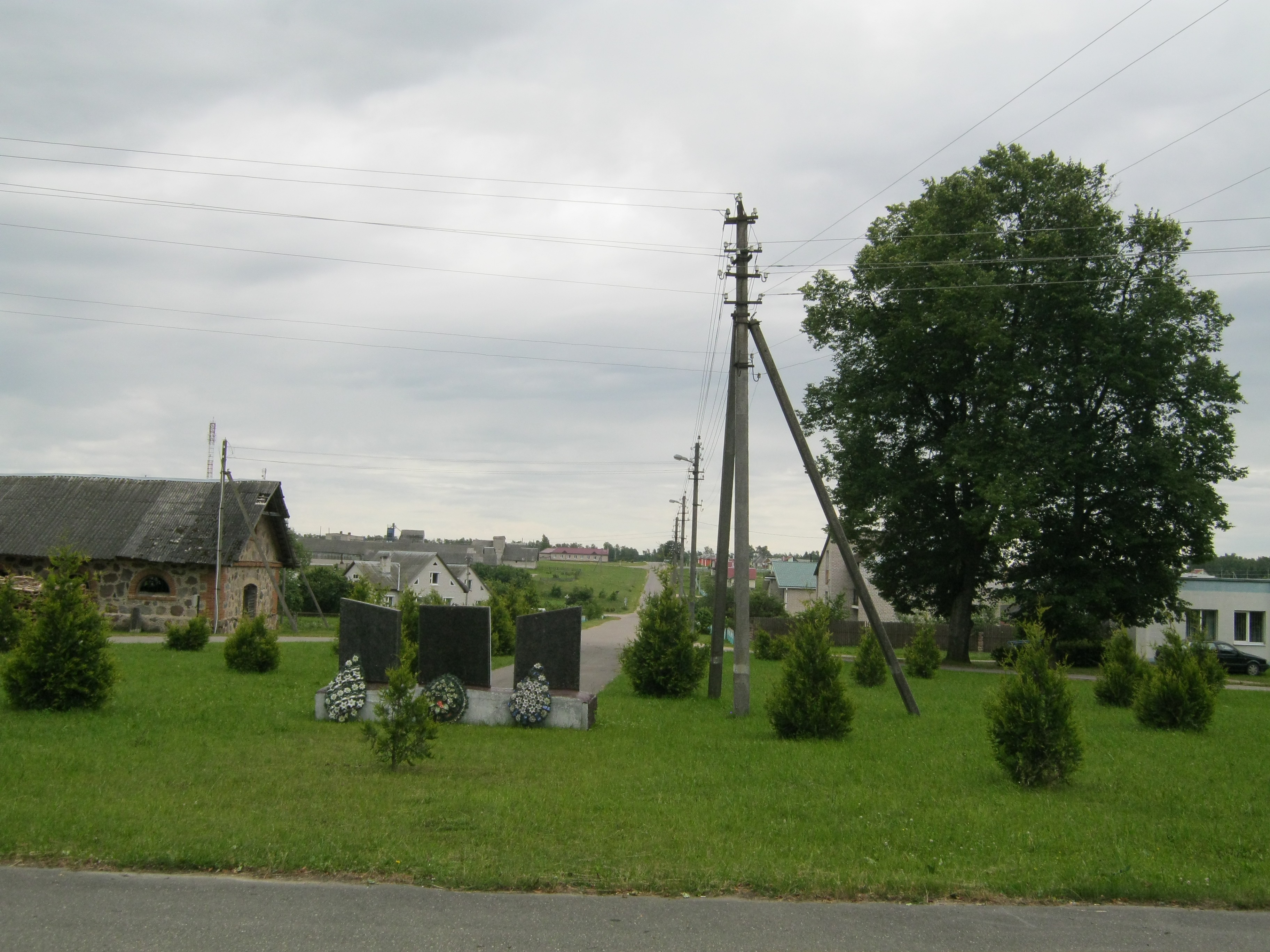 Устаноўлен помнік землякам, якія загінулі ў Вялікую Айчынную вайну.