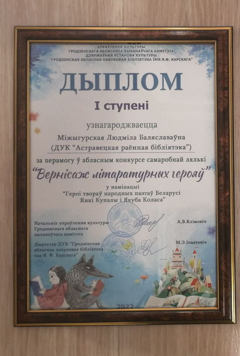 Астравецкая раённая бібліятэка пераможца конкурсу самаробнай лялькі ў намінацыі “Героі твораў розных нацыянальнасцей” ( 1-ае месца)